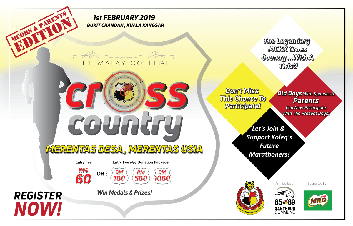 MCKK XC Run 2019 – MCOBs & Parents Edition is open only to Malay College Old Boys and Parents of Student of 2019 school session